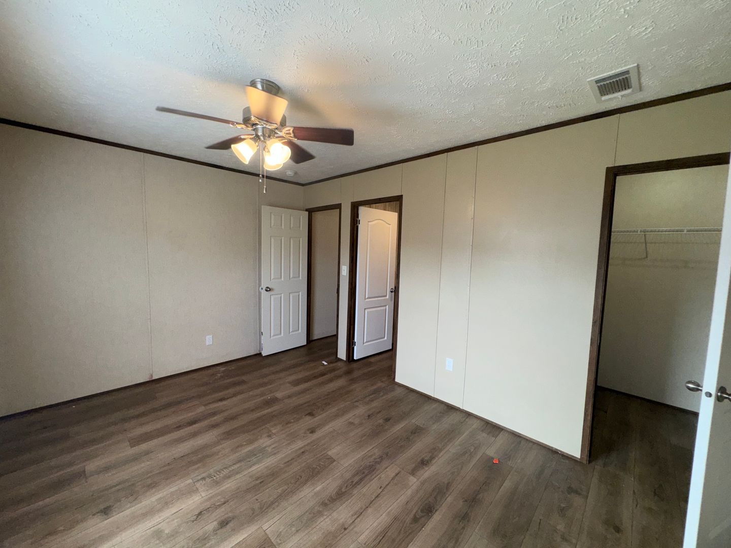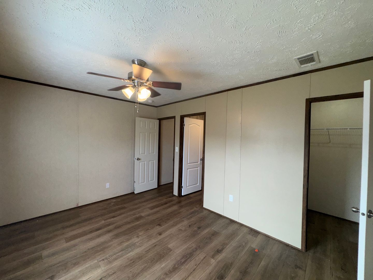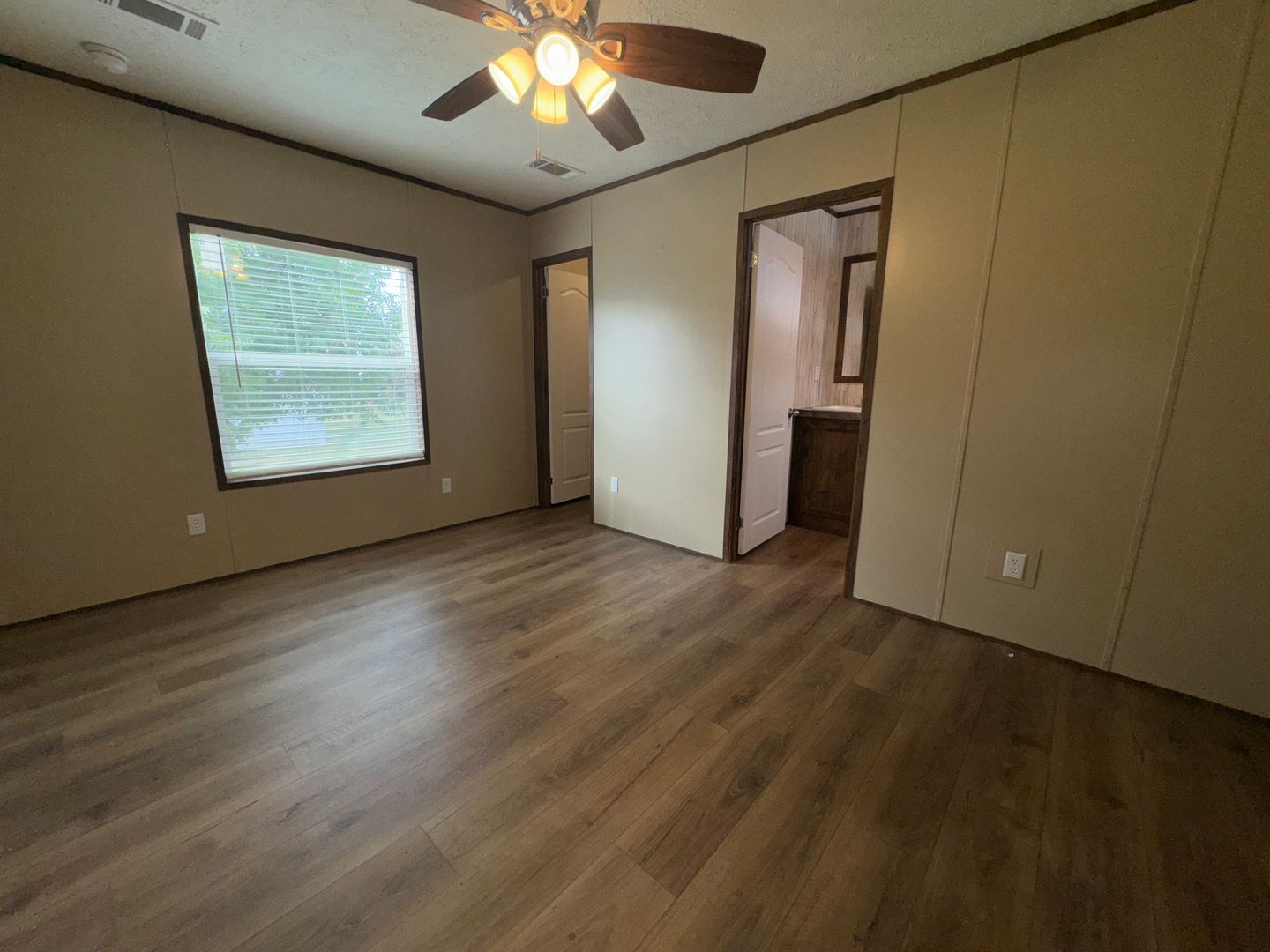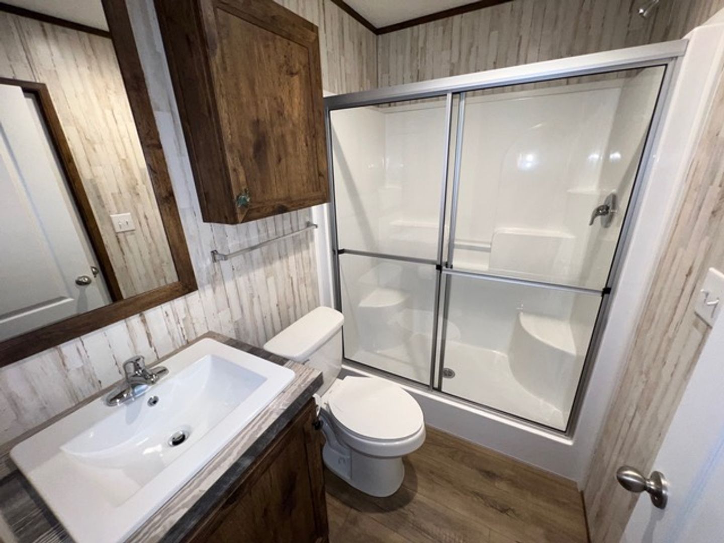 This like-new 2020 Clayton Hunter home has over 1200 square feet and has 3 bedrooms, 3 full baths, and 3 walk-in closets. Yes, each BR has a private bath and its own walk-in closet. All 3 bedrooms are the same size. The home also has roomy 8 ft ceilings with recessed LED lighting and ceiling fans in the LR and all bedrooms. The entire home is wrapped in sturdy OSB siding under the vinyl siding. It also has extra insulation in the walls and ceiling, and low-E double-pane windows for LOW power bills. The heating and air vents are located in the ceiling, so your furniture or rug won't cover your vents. The home is totally electric and has central heat and air, and a digital thermostat you can control from your smartphone from wherever you are. Other features: upgraded 50-gallon water heater so you don’t run out of hot water, steel front door and cottage-type steel rear door, separate laundry room with a pantry wired for a stand-up freezer, open concept kitchen/living area with new black Frigidaire stove with glass tile backsplash, black fridge with ice maker and dishwasher. The kitchen sink has a goose-neck sprayer. Fully lined cabinetry throughout and transom windows, which add extra light. Each bathroom features a sit-down 60" one-piece fiberglass shower with glass doors, china sinks, and towel and tissue holders built in. Built-in entertainment center for your big screen TV, linoleum flooring throughout for durability and easy clean-ups. Large covered deck for entertaining with full-width steps for easy entry and exit.
