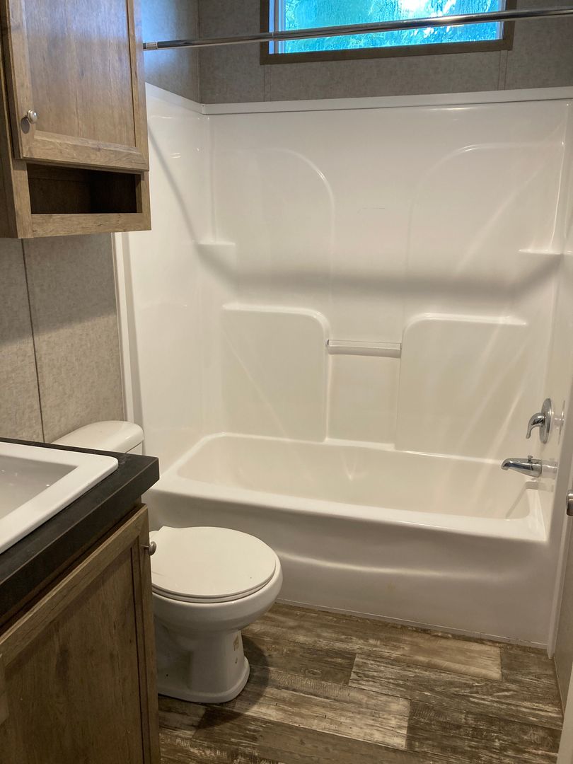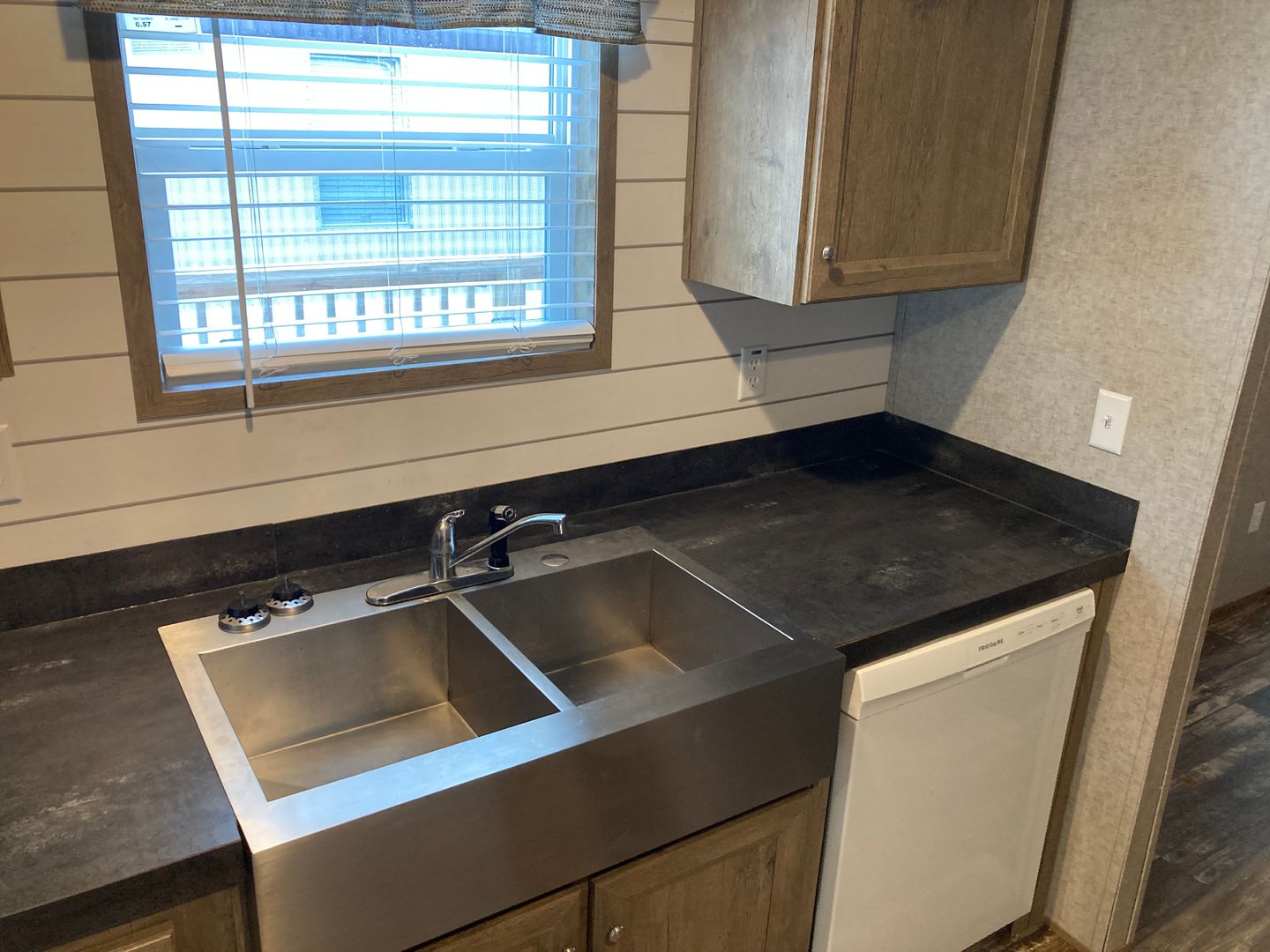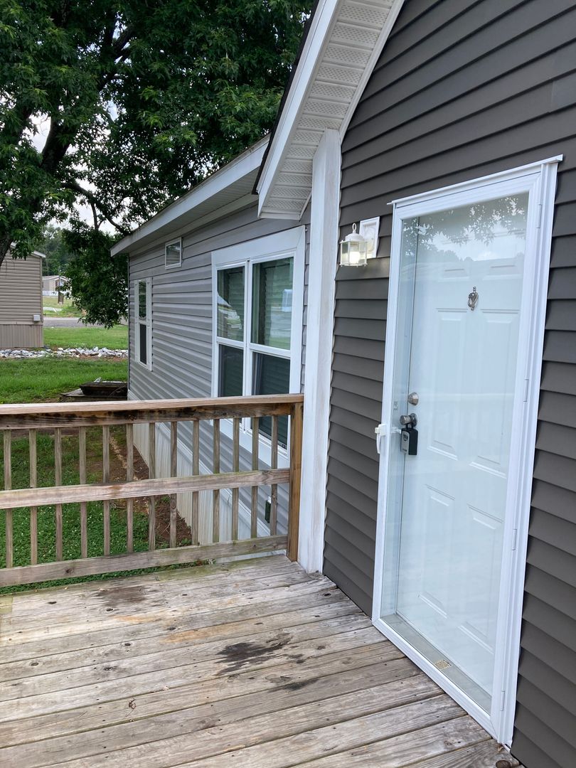 Large size: Over 1300 square feet of living space, tall 8ft flat ceilings. The home is wrapped in OSB under the vinyl for durability. Large porch built into the front and a roomy 8x12 deck on the side for entertaining. The home has a stainless farm sink with a gooseneck pull-out faucet in the kitchen, white Frigidaire appliances, transom windows for extra light, an upgraded insulation package, and Carrier heat pump and Low E thermopane windows for low power bills (home is total electric). Beautiful DuraCraft cabinetry throughout, large utility room, washer dryer connections, fiberglass tubs/showers, upgraded light fixtures, oil-rubbed bronze ceiling fans, the list goes on.